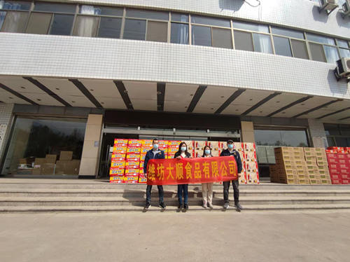 濰坊大順食品有限公司捐贈防疫物資,疫情防控人員夜以繼日保障廣大人民群眾的健康,我司為防控人員提供幫助,送去溫暖,為疫情抗擊工作做出微弱貢獻,守護我們共同的家園。濰坊大順食品有限公司是一家專業(yè)生產(chǎn)低溫油炸果蔬脆片的工廠,我們有60多種產(chǎn)品,有12年的生產(chǎn)經(jīng)驗。產(chǎn)品出口日韓、歐美多個國家。